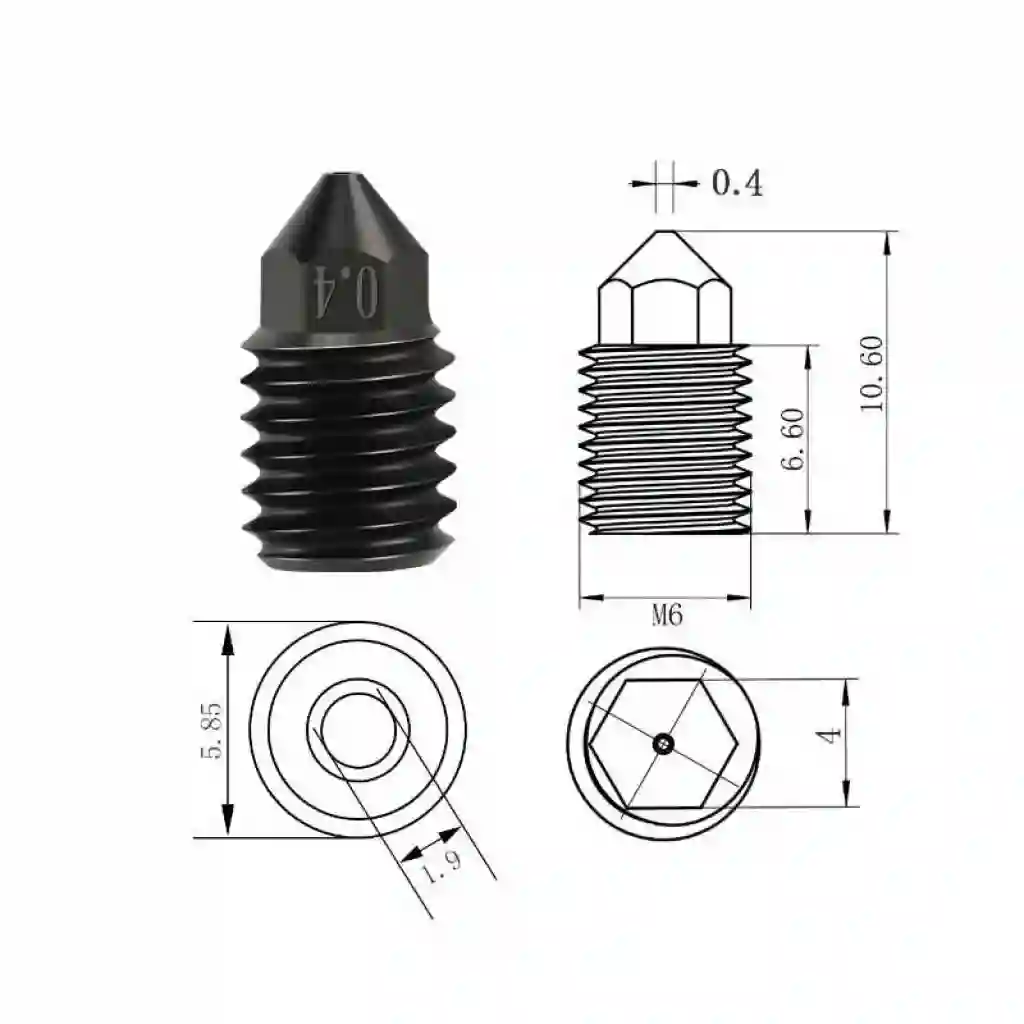 0.4mm filament çıkış çapına sahip Bambu Lab X1 Carbon, P1P vb. hotend yapısındaki cihazlarla uyumludur.
