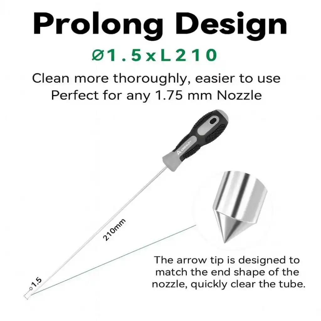 Creality marka 3D Yazıcı Extruder Temizleme İğnesi, 1.5mm x L210mm boyutu ile çok kullanışlı. 3D yazıcı parçaları arasında yer alıyor.