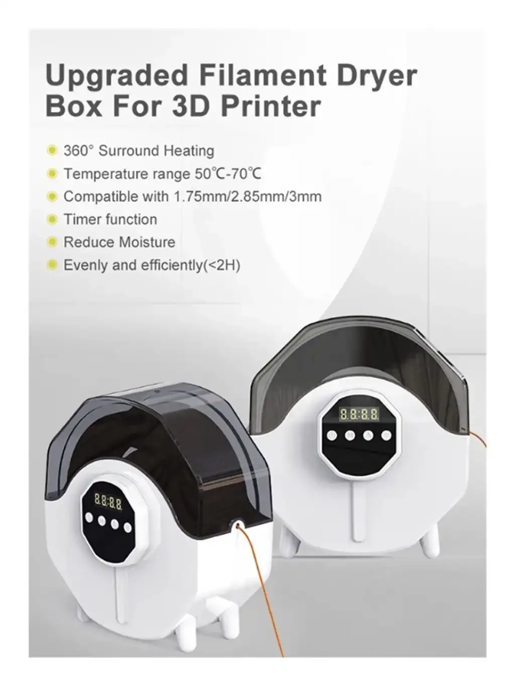 3 DİŞLİ AYARI: Filament kuru saklama kutusu, daha iyi ısı yalıtım etkisi ve daha kararlı sıcaklık ile 70 ℃'ye kadar olan 3 sıcaklık dişlisine sahiptir.