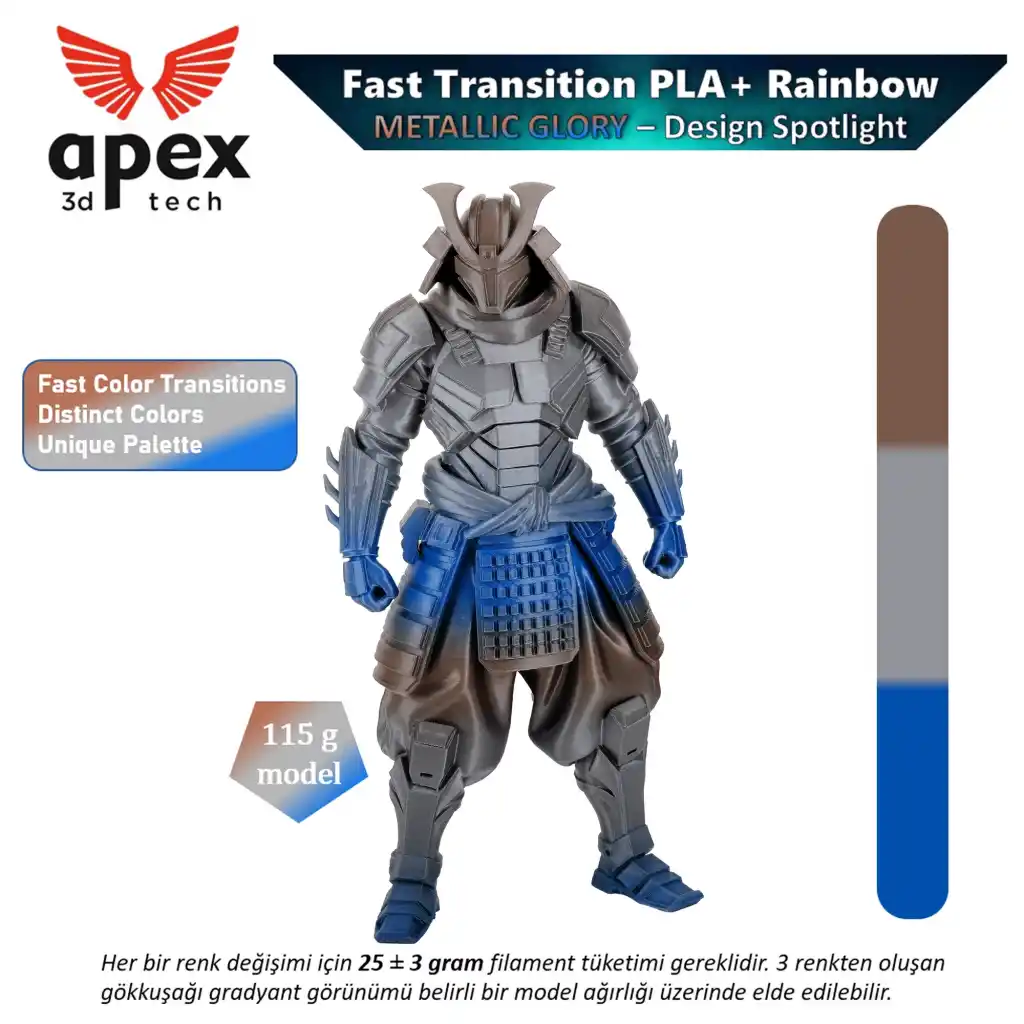 Apex 3D Tech - Hızlı Renk Geçişi Rainbow Filament Serisi