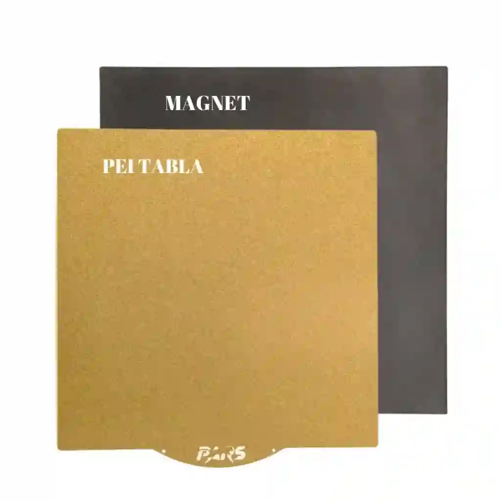 2. Yapışkanlık (Yapışma); PEI yüzeyler, filamentlerin tabana iyi yapışmasını sağlar. Bu, yazdırma sırasında modelin hareket etmesini veya bozulmasını engeller. Isıtılmış tabla ile birlikte PLA, ABS, PETG gibi birçok filament için ekstra yapışkanlık sağlar.