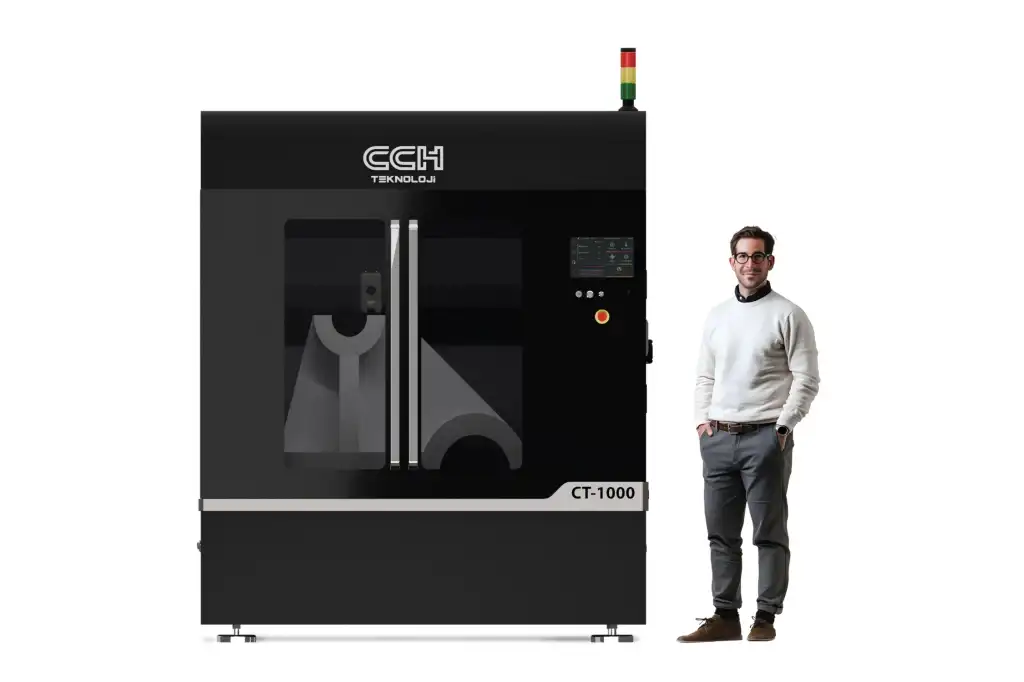 CT-1000 Büyük Boy Endüstriyel 3D Yazıcı, yüksek hassasiyetle 1000x1000x1000mm boyutlarında büyük ölçekli projeler için idealdir.