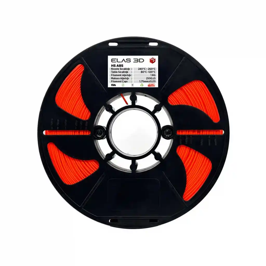 Sağlamlık ve Dayanıklılık: ABS, sağlamlığı ve dayanıklılığı ile bilinen bir malzemedir. Elas 3D Turuncu Hs ABS filament ile ürettiğiniz modeller, uzun yıllar boyunca dayanıklılığını korur.