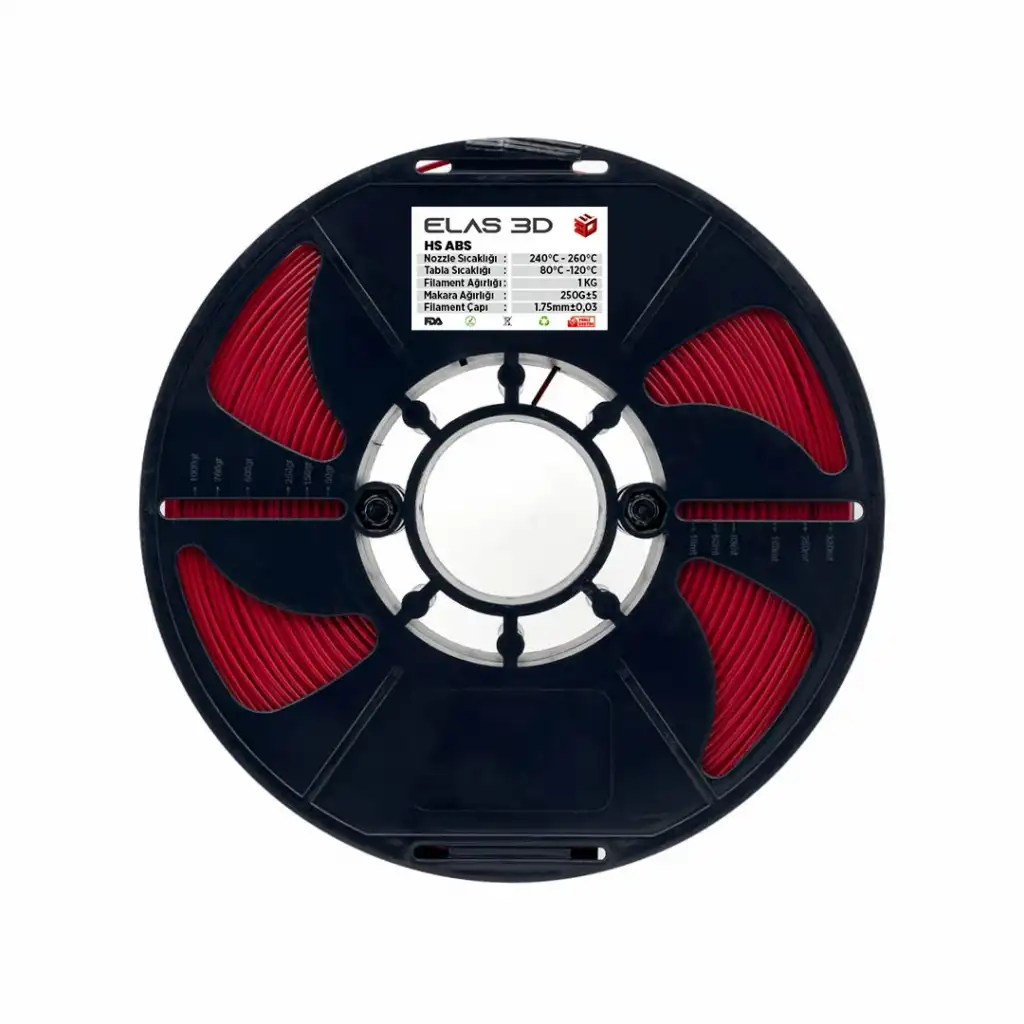 Sağlamlık ve Dayanıklılık: ABS, sağlamlığı ve dayanıklılığı ile bilinen bir malzemedir. Elas 3D Kırmızı Hs ABS filament ile ürettiğiniz modeller, uzun yıllar boyunca dayanıklılığını korur.