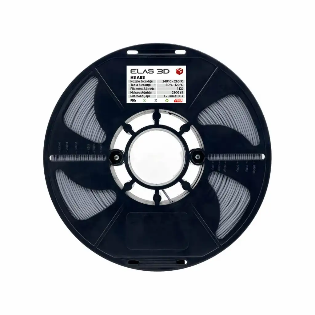 ABS, 3D baskı için en popüler filament türlerinden biridir. Dayanıklılığı, esnekliği ve mükemmel bir şekilde işlenebilir olması nedeniyle birçok profesyonel ve amatör kullanıcı tarafından tercih edilmektedir. Elas 3D Gri Hs ABS, bu özellikleriyle ön plana çıkar ve kullanıcılara üst düzey bir baskı deneyimi sunar.