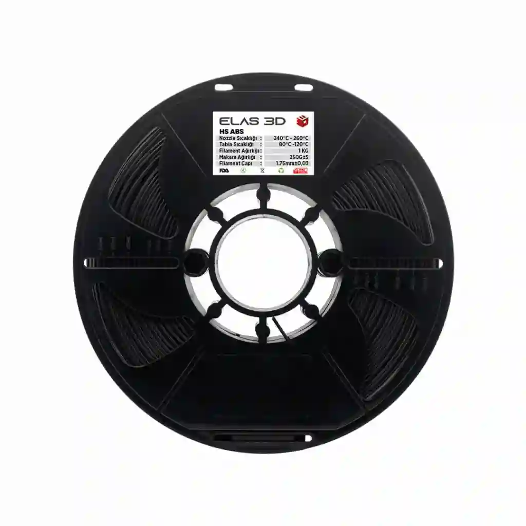 Elas 3D Siyah Hs ABS, yüksek sıcaklık dayanımı ve dayanıklılığıyla bilinen bir 3D baskı filamentidir. Genellikle mühendislik uygulamalarında kullanılır.