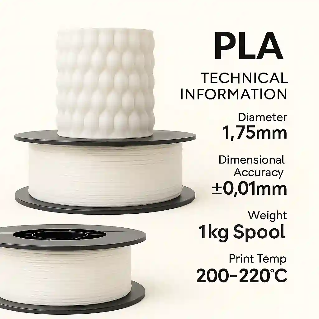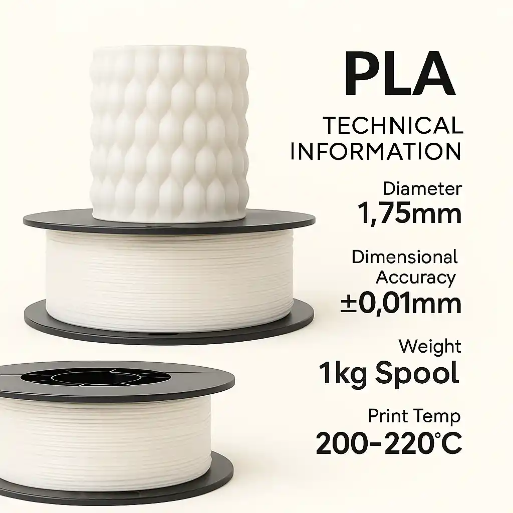 NOT : ÜRÜNLER 10 ADET OLARAK SATILMAKTADIR Baskı Kolaylığı PLA+, PLA'nın geliştirilmiş bir versiyonudur. Yüksek mukavemet ve tokluğa sahiptir. Kırılması kolay değildir. Düşük büzülme özelliğine sahiptir. Deformasyon ve çatlama yok, yüksek baskı hassasiyeti mevcuttur. Bitkisel kaynaklardan elde edilen nişasta hammaddeleri ile üretilmiştir, iç mekan baskıları için idealdir.