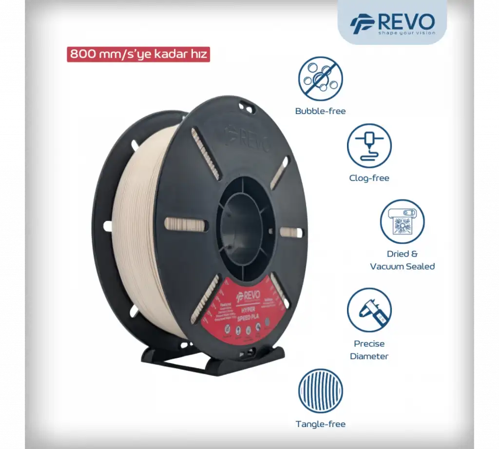 Bu filament, Revo mühendisliğinin bir sonucudur. Kaliteyi şansa bırakmayan, her ayrıntıyı test eden bir ekibin elinden çıkmıştır.