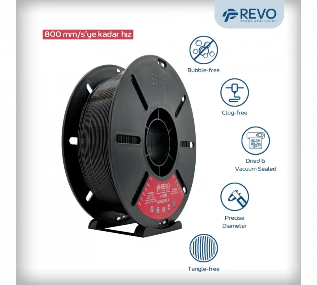 Bu filament, Revo mühendisliğinin bir sonucudur. Kaliteyi şansa bırakmayan, her ayrıntıyı test eden bir ekibin elinden çıkmıştır.